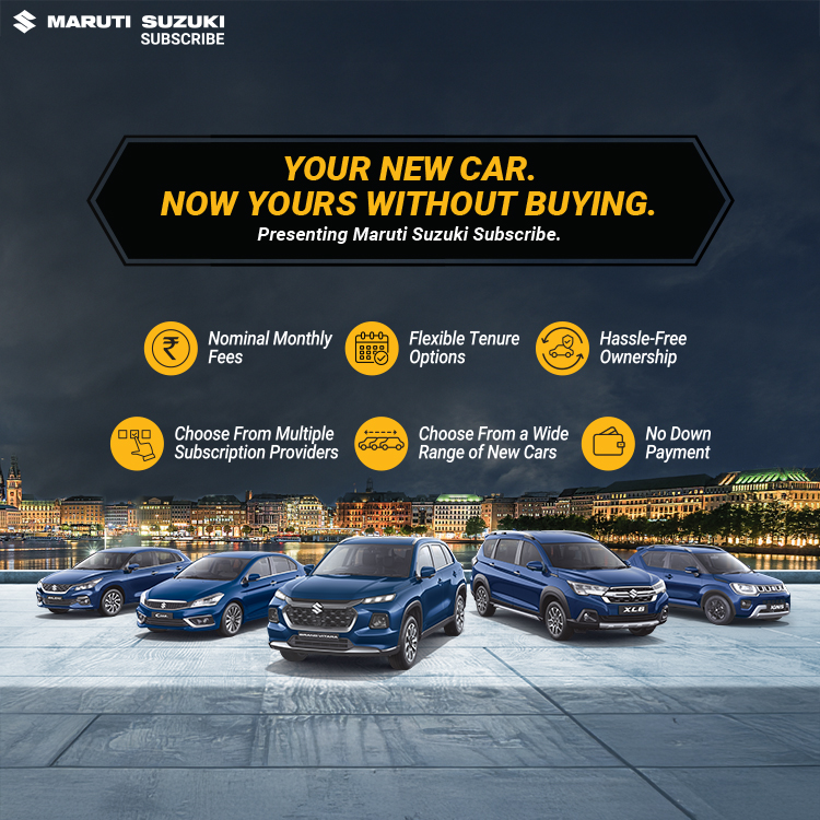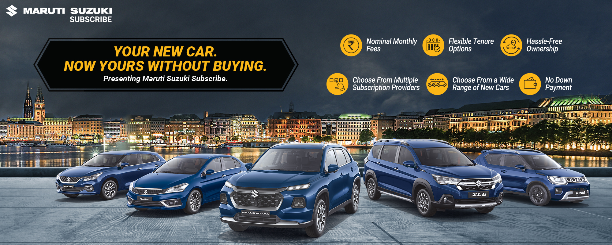 Located in Coimbatore, JK offers a plethora of options of Nexa cars for Maruti Suzuki Subscribe. You can choose your desired Maruti Suzuki car and drive it home at nominal monthly fees for a variety of flexible tenure periods. Whether you prefer Hatchback, Sedan, SUV or even MUV you are sure to find it at JK, with an easy Maruti Suzuki Subscribe plan.